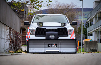 Die Hydraulikeinheit ist direkt am Pflug integriert. Sie benötigen lediglich eine Stromversorgung und eine Aufnahme am Fahrzeug – die bei Nichtgebrauch elegant verdeckt ist.